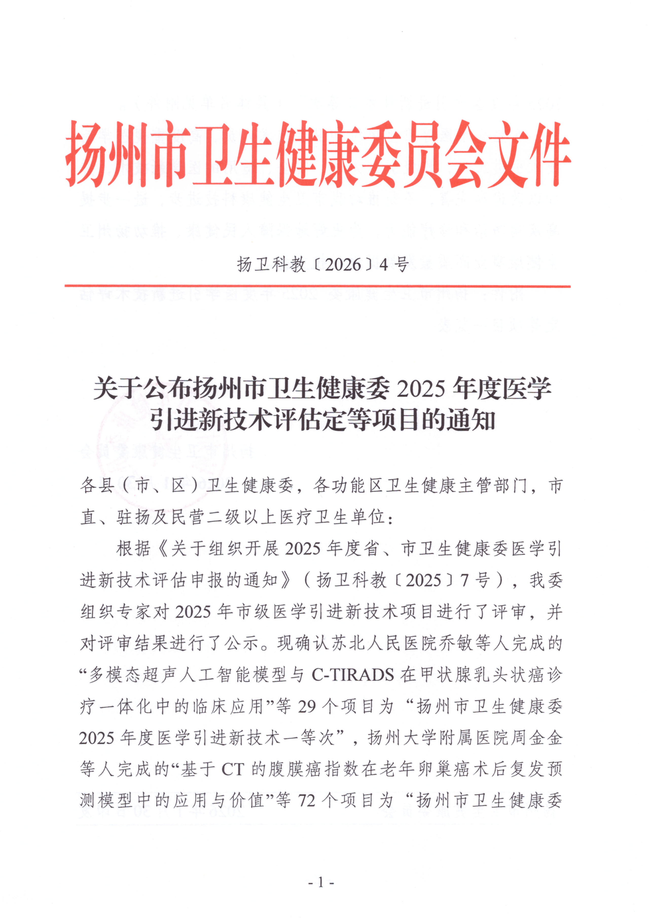 捷報(bào)傳來(lái)!我院兩項(xiàng)成果榮獲揚(yáng)州市醫(yī)學(xué)新技術(shù)引進(jìn)一等次